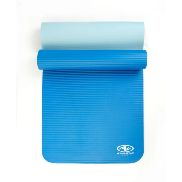 Athletic Works Two Tone Fitness Mat, 10mm, 72inx24in, Blue Color, NBR Foam, with Carry Strap