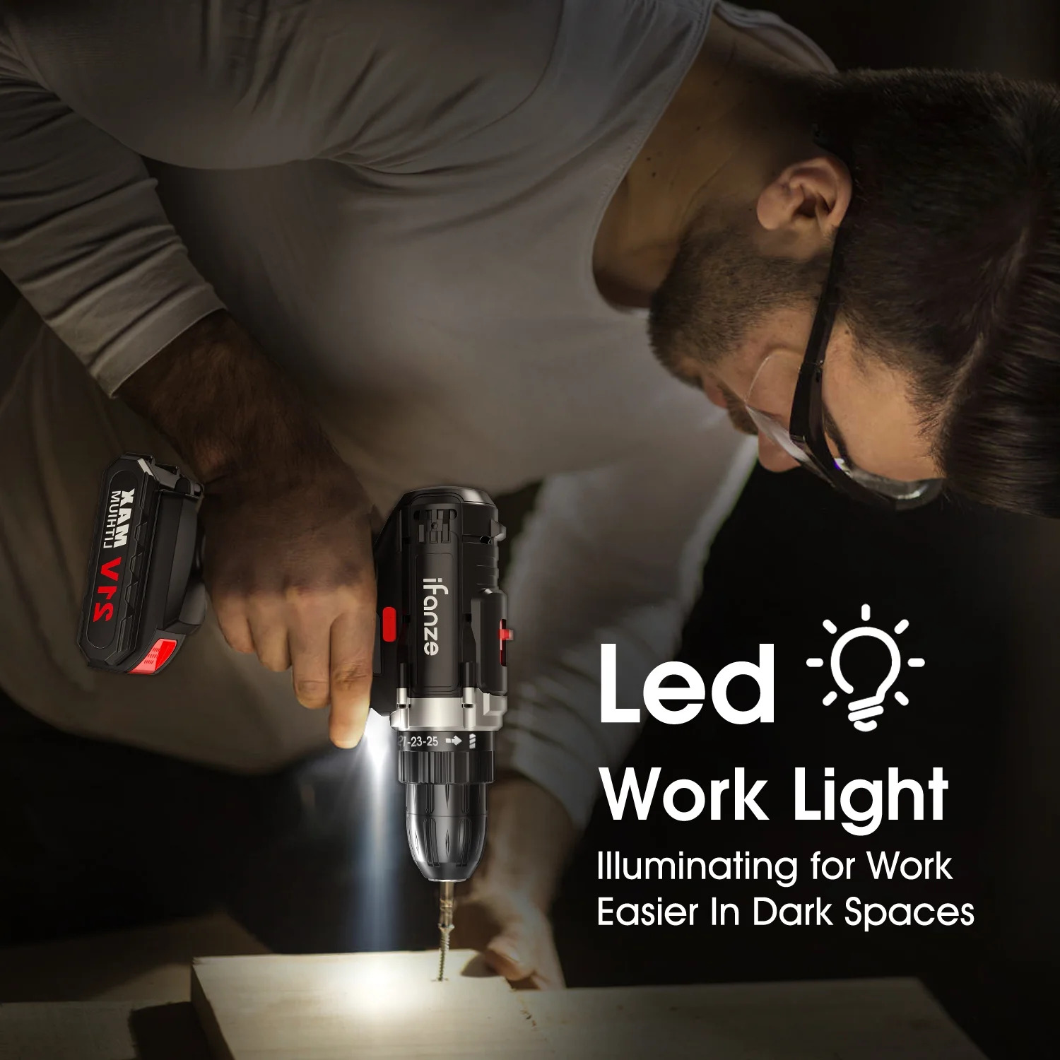 21V Cordless Drill, Power Drill Driver Set with 2 Batteries, 3/8″Keyless Chuck, 25+1 Position, 2 Variable Speed, Built-in LED for Drilling and Screw Driving