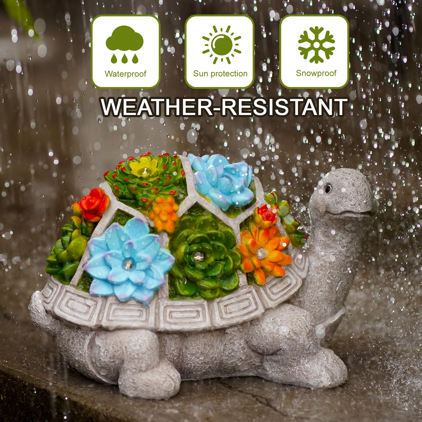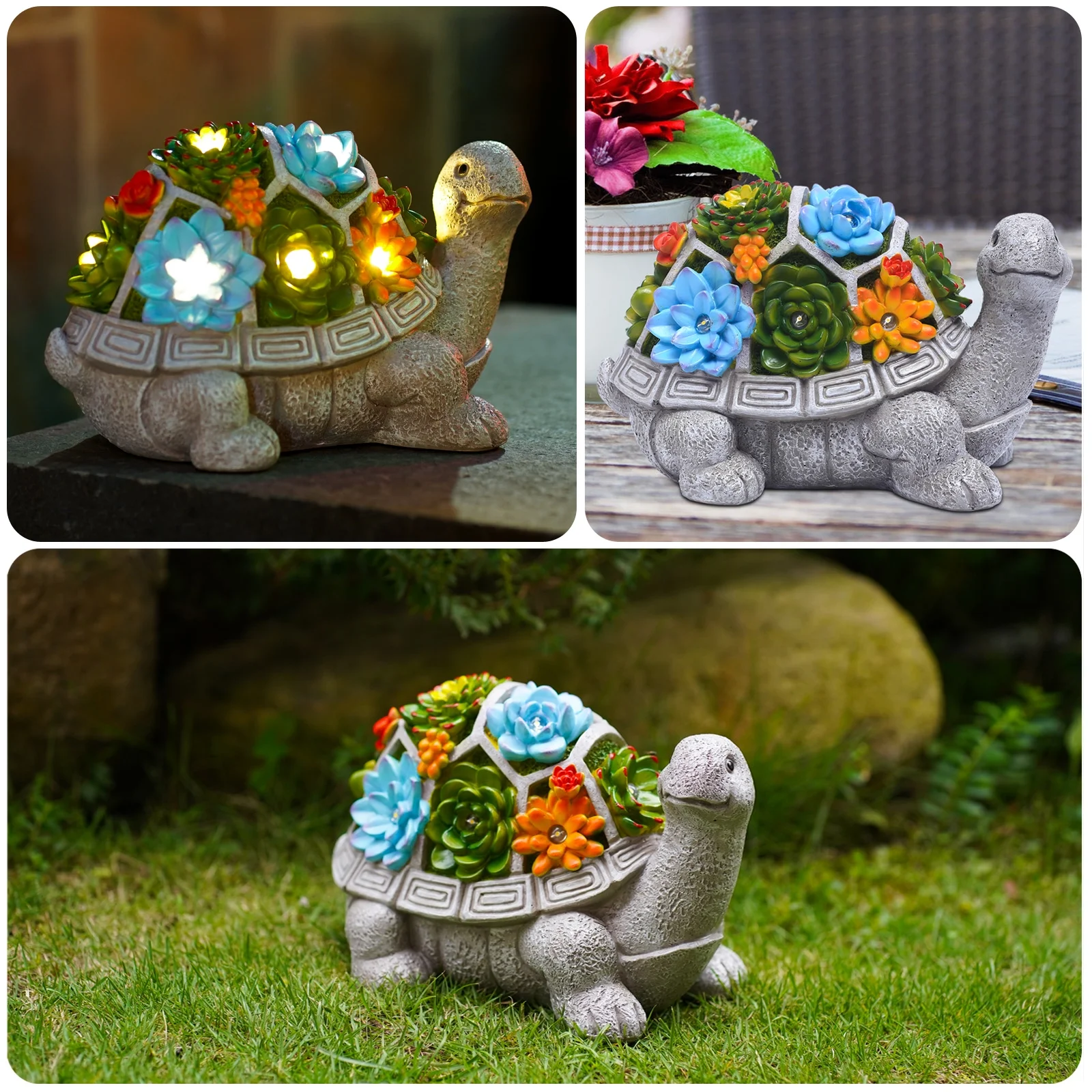 - Charming Design: Features a charming turtle figurine with a succulent and 7 LED lights, perfect for enhancing your outdoor decor