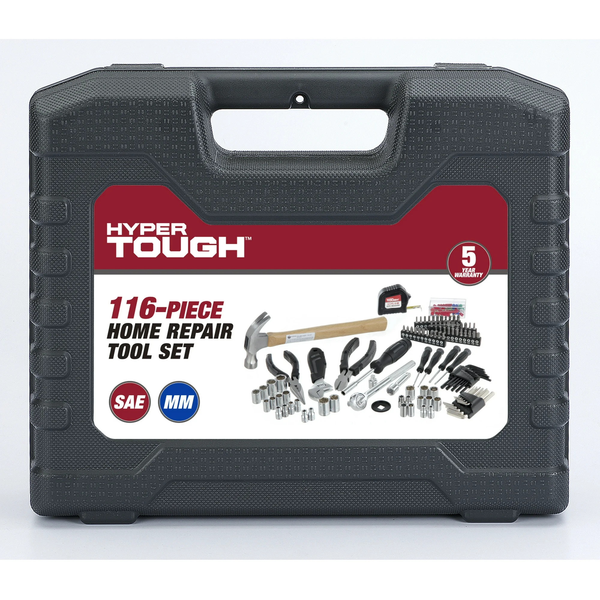 - Comprehensive Set: This 116-piece Hyper Tough Home Repair Tool Set includes a hammer, screwdrivers, wrenches, pliers, and a measuring tape, suitable for various home repair projects.