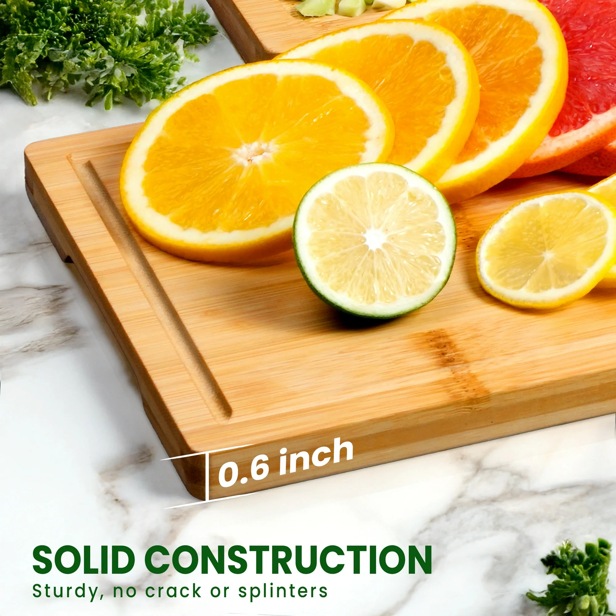 - Durable Bamboo: Constructed from three-layer thick bamboo, these boards are dense and sturdy, ensuring long-lasting daily use in the kitchen.