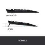 - The keys have been optimized for improved accuracy and reduced noise – and your fingers will immediately feel at home on the familiar key surface and layout. The palm rest and adjustable tilt legs keep you comfortable for long stretches at the desk.
