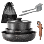 - Space-Saving Design: Stackable cookware set with a detachable handle for easy storage.