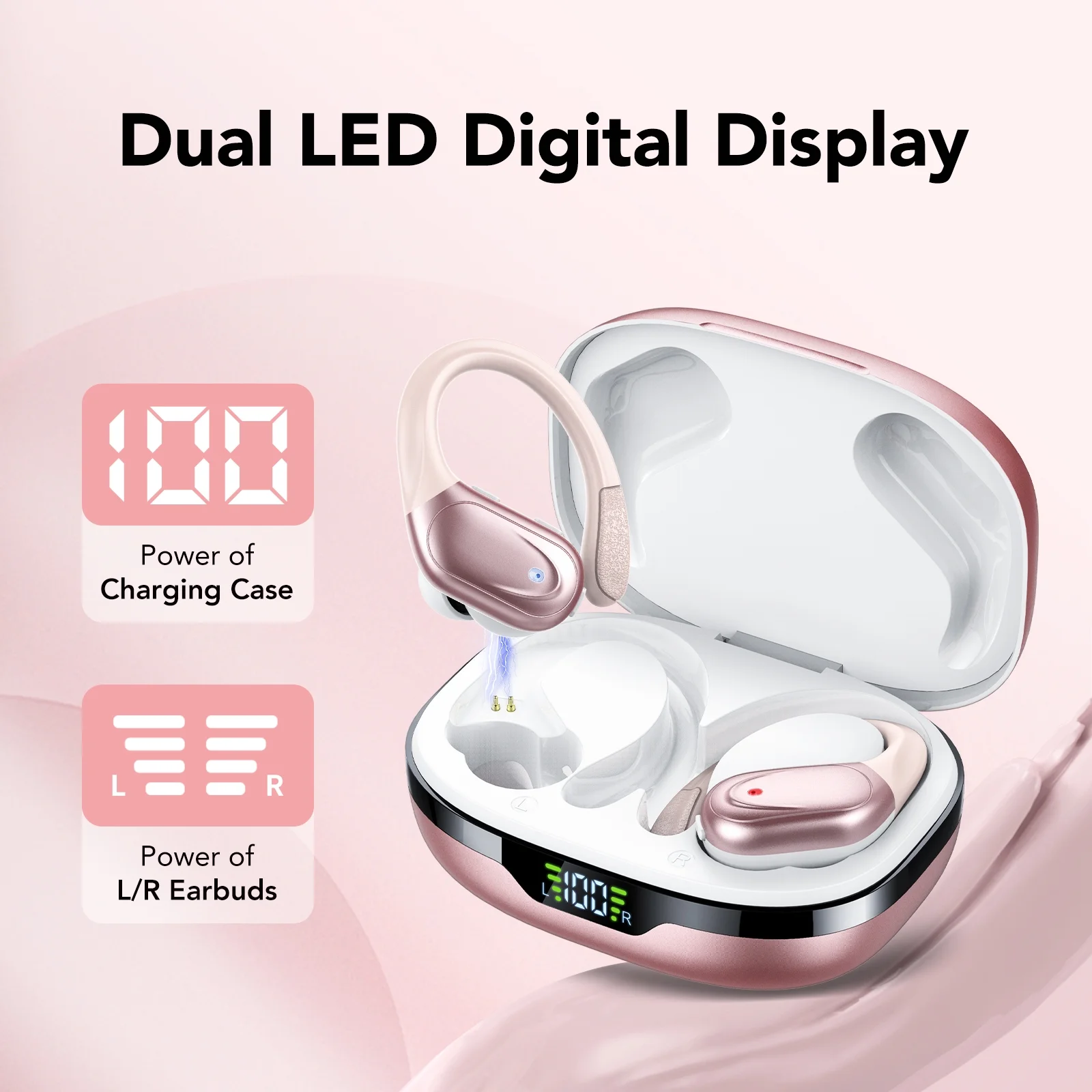 - 80Hrs Playtime & Digital Charging Case:Â Each earbud offers up to 10 hours of listening time on a single charge, allowing you to enjoy a total of 80 hours of music by taking turns with the charging case. The wireless earbuds feature a dual LED digital display that provides real time battery status, enabling you to monitor the remaining power easily. Supports wired charging with a Type C cable and wireless charging via Qi certified charging pad (not included)